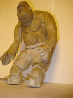 I have created as we can see a clay model of cornelius which took a lot of time and delicacy as the overall shape of the gorilla. I have done my best to stick to the concept art design whilst creating this model although to some extent changes were made. I decided not to include glasses as after many attempts it proved to difficult a task to create clay glasses. However I am happy with the model and it has given me a better understanding of the character and think that it will definately help me when shaping it using maya.